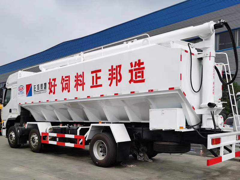 (4)料罐容積30-35方,4個(gè)獨(dú)立倉(cāng),實(shí)載:豬料 17-19噸,雞料19-21噸