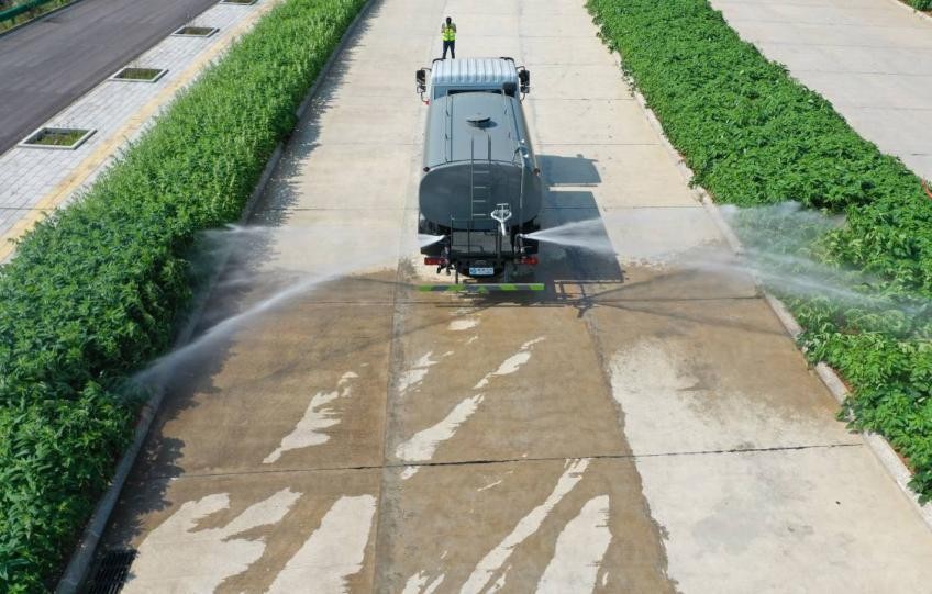 我公司產(chǎn)品標配前噴(鴨嘴)、后沖、后灑、側(cè)噴、后置式工作平臺,平臺上配置綠化水炮(可 360°旋轉(zhuǎn),既可以調(diào)成柱狀,也可以調(diào)成霧狀,更可以調(diào)成直沖狀、大雨、中雨、小雨、毛毛雨),配備優(yōu)質(zhì)大功率專用灑水泵(可自吸自排,可從河里或池塘抽水到罐體),取力器,雜物過濾網(wǎng),消防接口,自流球閥系統(tǒng)、取力器、球閥、濾網(wǎng)均為國家標準產(chǎn)品,主管道加粗,法蘭墊、法蘭盤加厚,大通徑球閥。整體具備性能優(yōu)良安全可靠、效率高、流量大、維修方便等特點。