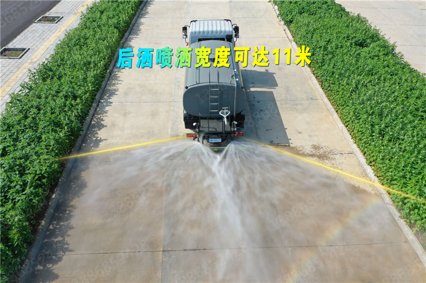 京A灑功能配置:罐體有效容積9噸,采用武鋼4mm 優(yōu)質(zhì)碳鋼一次卷壓無(wú)縫成型,部分配灑水泵,帶前沖、后灑、側(cè)噴、后工作平臺(tái)及灑水高壓炮。配消防接口、自流閥,2根與罐體等長(zhǎng)輸水管,水位計(jì),1個(gè)爬梯,兩側(cè)及后杠。灑水泵自吸高度為7米,出水量為60立方米每小時(shí),灑水寬度大于14米,后工作平臺(tái)水炮可調(diào)成直沖狀、大雨、中雨、小雨、毛毛雨,直沖射程25米左右,霧狀射程15米左右。(可選配:錳鋼罐體、加粗管道、駕駛室一鍵操作、氣動(dòng)控制、罐體防腐、高端灑水泵) 灑性能特點(diǎn):前沖(噴)后灑,帶側(cè)噴,罐體后帶工作平臺(tái),平臺(tái)上安裝綠化灑水炮,灑水炮可360旋轉(zhuǎn),可連續(xù)調(diào)成直沖狀、大雨、小雨、毛毛雨,帶安全護(hù)欄,配備全國(guó)質(zhì)量評(píng)比首名的杭州威龍大功率? 灑水泵,泵可自吸自排,安裝過(guò)濾網(wǎng),帶消防接口,可通過(guò)消防栓進(jìn)水,帶自流閥,隨車選裝20米綠化卷盤,可噴灑農(nóng)藥