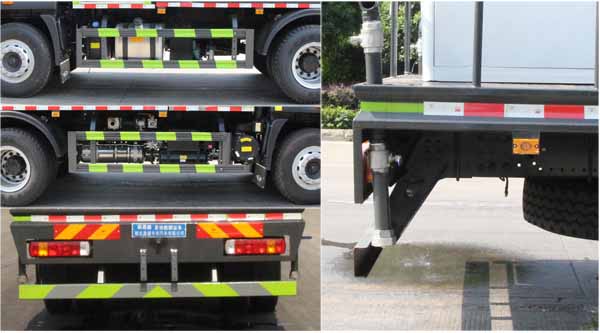 該車用途為抑塵降霾.主要裝置為罐體及噴霧裝置.罐體總?cè)萘?/span>:10.55立方米,罐體有效容積:10立方米,罐體外形尺寸(長(zhǎng)×長(zhǎng)軸×短軸)(mm):2800×2450×1720.ABS控制器型號(hào)為CM4XL-4S/4M,ABS控制器生產(chǎn)企業(yè)為廣州瑞立科密汽車電子股份有限公司.側(cè)、后防護(hù)材料均為:Q235碳鋼,連接方式均為:螺栓連接,后部防護(hù)截面尺寸(mm):120×50,后部防護(hù)離地高度(mm):470.僅采用底盤(pán)3950mm軸距改裝.選裝前部電子炮樣式;選裝前部不帶電子炮.當(dāng)前部選裝不帶電子炮時(shí),車長(zhǎng)7780mm,無(wú)前伸.當(dāng)前部選裝帶電子炮時(shí),車長(zhǎng)8280mm,前伸為500mm.隨底盤(pán)選裝新前圍及LOGO.選裝前面板"福田·領(lǐng)航"裝飾字樣. |