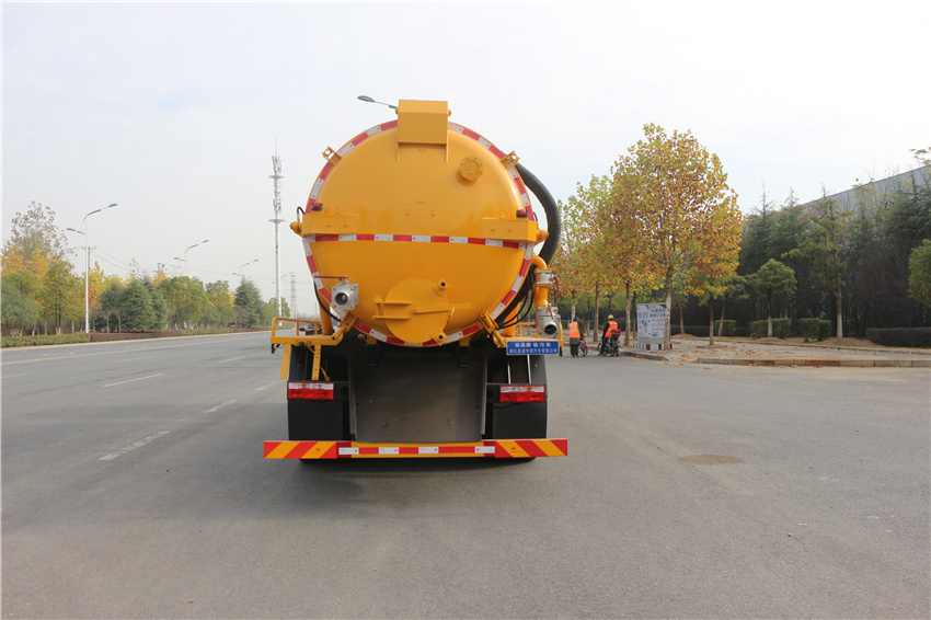 1. 罐體采用的是圓形罐體,結(jié)構(gòu)更緊密,可以耐更高壓力提供更大的吸力, 吸程遠(yuǎn),尾部排放口以液壓油缸伸舉方式設(shè)計(jì),可以更全面的排出所吸收的雜質(zhì)。