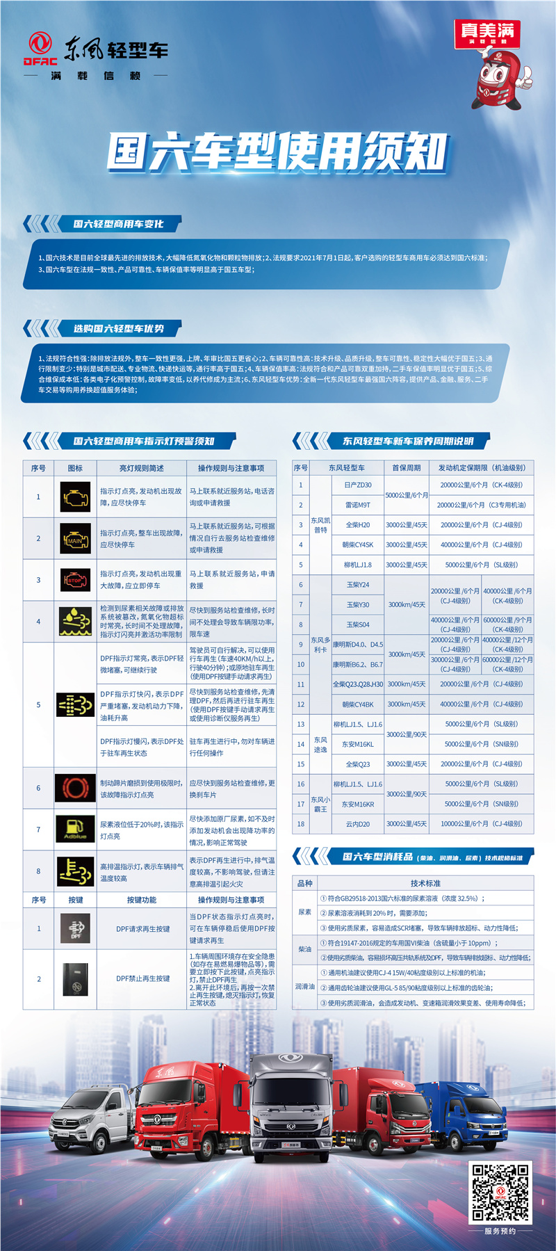 1、法規符合性強;除排放法規外,整車一致性更強,上牌、年審比國五更省心;2、車輛可靠性高;技術升級、品質升級,整車可靠性、穩定性大幅優于國五;3、通行限制變少∶特別是城市配送、專業物流、快遞快運等,通行率高于國五;4、車輛保值率高;法規符合和產品可靠雙重加持,二手車保值率明顯優干國五;5.綜合維保成本低∶各類電子化預警控制,故障率變低,以養代修成為主流;6、東風輕型車優勢∶全新一代東風輕型車最強國六陣容,提供產品、金融、服務、二手車交易等購用養換超值服務體驗;