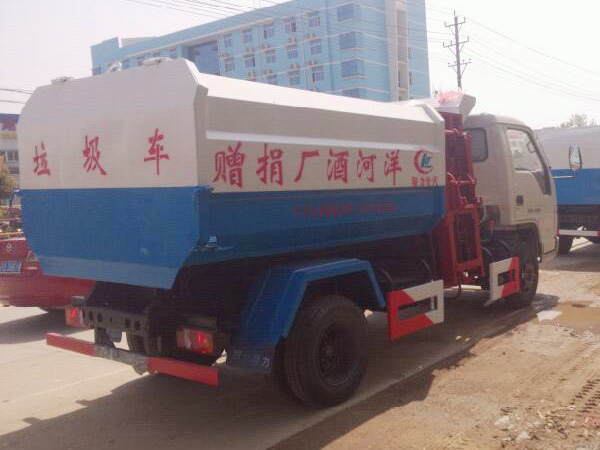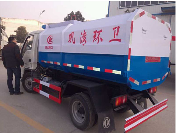 掛桶式垃圾車(自裝卸式垃圾車)組成部分:采用國內(nèi)知名品牌原裝底盤(全國聯(lián)保)、箱體裝置(密封式)、取力器、多路換向閥、掛桶提升機(jī)構(gòu)、液壓系統(tǒng)、操作系統(tǒng)等組成。