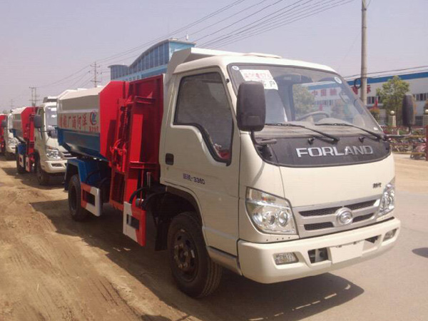 福田小卡自裝卸垃圾車自卸方式:后卸式。隨底盤選裝駕駛室。防護(hù)材料:Q235A碳鋼,連接方式:左右側(cè)面及后下部防均采用焊接連接,后下部防護(hù)斷面尺寸(mm):100×50,后下部防護(hù)離地高度(mm):380。僅采用軸距(mm):2600。