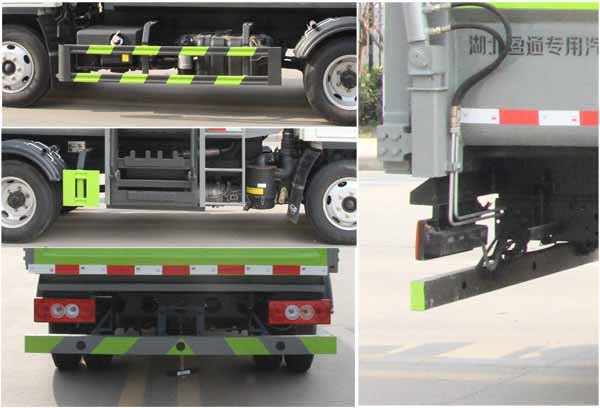 福田垃圾車,自裝自卸式垃圾車,祥菱自裝自卸式垃圾車,掛桶式垃圾車,該車專用裝置為垃圾箱體、提升機構,主要用于垃圾的收集,轉運作業.ABS系統控制方式為4S/4M,氣剎:ABS型號為CM4XL-4S/4M,生產廠家為廣州瑞立科密汽車電子股份有限公司.液剎:ABS型號為CM4YL,生產廠家為廣州瑞立科密汽車電子股份有限公司.側、后防護材料均為:Q235碳鋼,側防護連接方式為:螺栓連接,后防護連接方式為:焊接連接,后部防護截面尺寸(mm):100×50,后部防護離地高度(mm):390.該車選裝直接供電式ETC車載裝置;隨底盤選裝新前格柵及新logo.選裝新前圍.選裝箱體側面樣式.僅采用底盤2850mm軸距改裝.發動機/油耗申報值(L/100km):Q23-115E60/11.12,Q23-115C60/11.31.該車整備質量包含隨車工具.貨箱質量:1390kg,1555kg.貨箱材質:Q235;貨箱底板厚度:3mm,左右前后側板厚度:3mm.