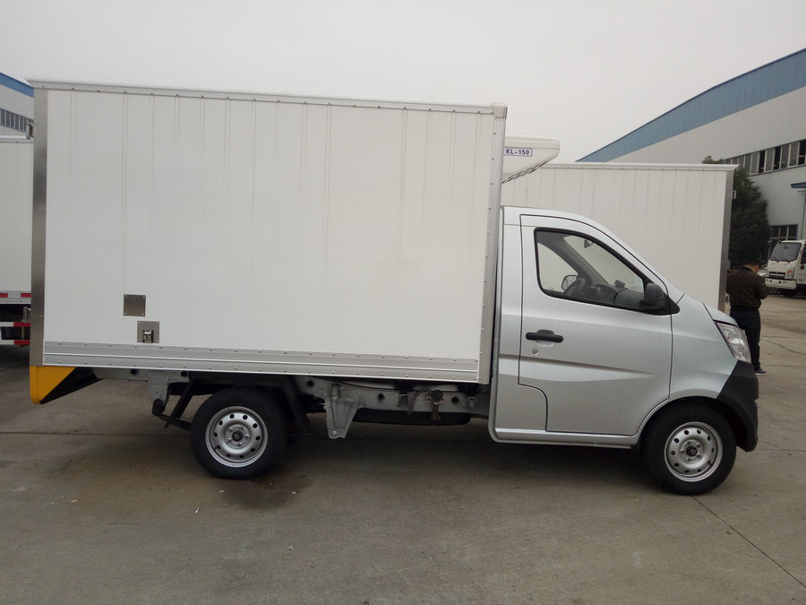 冷藏車廂體:采用國標A級聚氨酯保溫材料,厚度為8厘米,廂體內外采用玻璃鋼材質全包裹。不銹鋼鎖件。包角、包邊鋁合金型材。底盤采用高強度花紋鋁板定制。可選裝肉鉤導軌,和底部通風槽。
