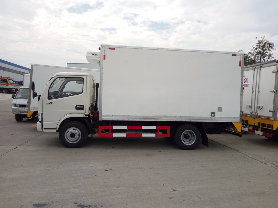 冷藏車廂體:采用國標A級聚氨酯保溫材料,厚度為8厘米,廂體內外采用玻璃鋼材質全包裹。不銹鋼鎖件。包角、包邊鋁合金型材。底盤采用高強度花紋鋁板定制。可選裝肉鉤導軌,和底部通風槽。