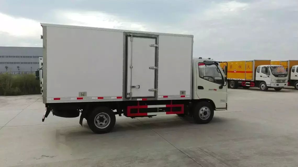 冷藏車廂體:采用國標A級聚氨酯保溫材料,厚度為8厘米,廂體內外采用玻璃鋼材質全包裹。不銹鋼鎖件。包角、包邊鋁合金型材。底盤采用高強度花紋鋁板定制。可選裝肉鉤導軌,和底部通風槽。