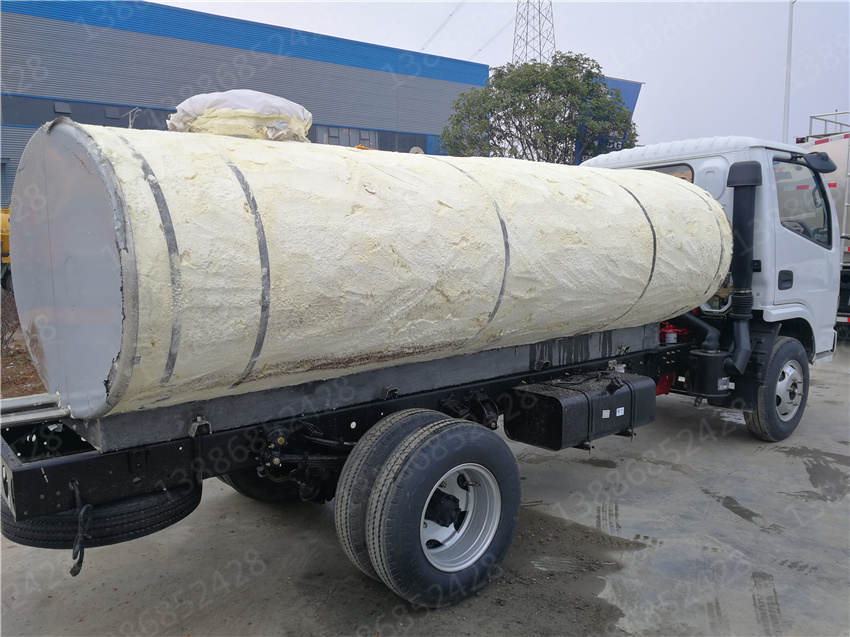 保溫?zé)崴嚺c普通灑水車的區(qū)別就是在水罐外面加了一道保溫層。保溫層的制作是在水罐外面焊接5公分的支撐骨架,然后用保溫材料填充,再在保溫層外面外包一層碳鋼板或者不銹鋼板焊接制作