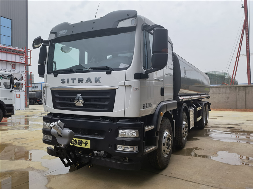 汕德卡25方灑水車_重汽8x4灑水車_國六25方灑水車_前四后八灑水車價格,該車主要用于城鄉園林綠化噴灑作業.主要裝置為罐體及噴灑裝置;罐體總容量:19.67立方米;罐體有效容積:18.74立方米;罐體外形尺寸(×長軸×短軸)(mm):7300×2450×1650.僅采用軸距(mm):1800+3800+1350改裝.側、后防護材料均為:Q235碳鋼,連接方式均為:螺栓連接,后部防護截面尺寸(mm):120×50,后部防護離地高度(mm):490.ABS系統控制器生產企業/型號為采埃孚商用車系統(青島)有限公司/4460046300;隨底盤選裝駕駛室,選裝噴霧裝置樣式,選裝自動球閥安裝位置,選裝弧形噴灑裝置,選裝箭頭燈裝置,選裝大工作平臺,選裝前部不帶電子霧炮.選裝電子炮裝置樣式.當前部選裝電子炮裝置時,前伸為500mm,整車長度為11560mm,11750mm.隨底盤選裝限速裝置,限速89km/h.